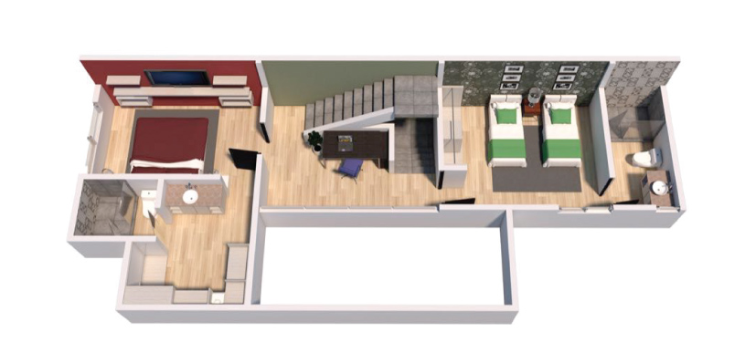 habitación con baño completo y terrazas)